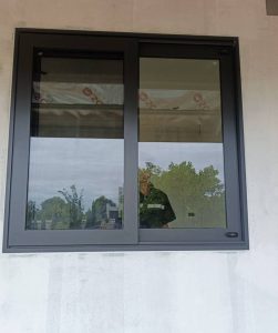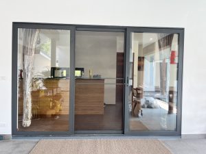 ตัวอย่างหน้างานติดตั้ง ประตูกระจกอลูมิเนียม บานเลื่อน 2 ทาง